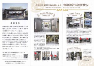 魚津神社におきましても、大きく被害を受け、鳥居などは安全のためやむなく解体撤去をしております。